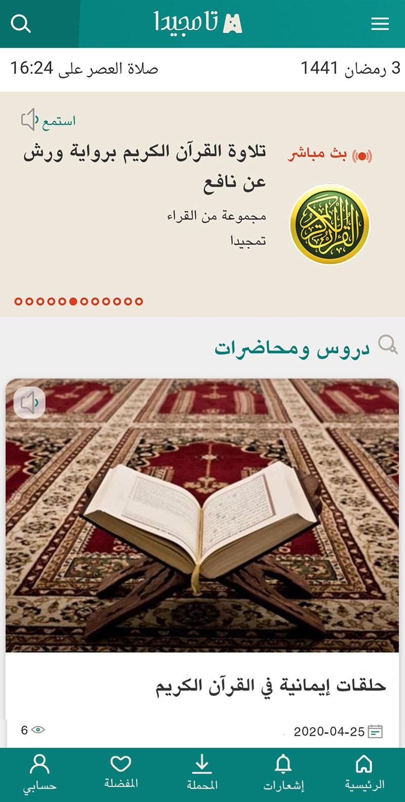 متابعة البث المباشِر لمجالس القرآن والمحاضرات ودروس الوعظ والإرشاد...
